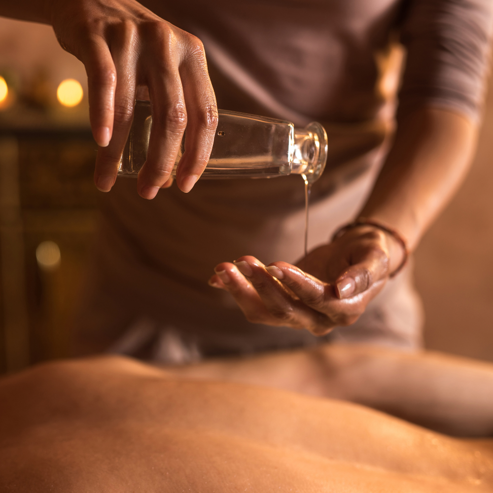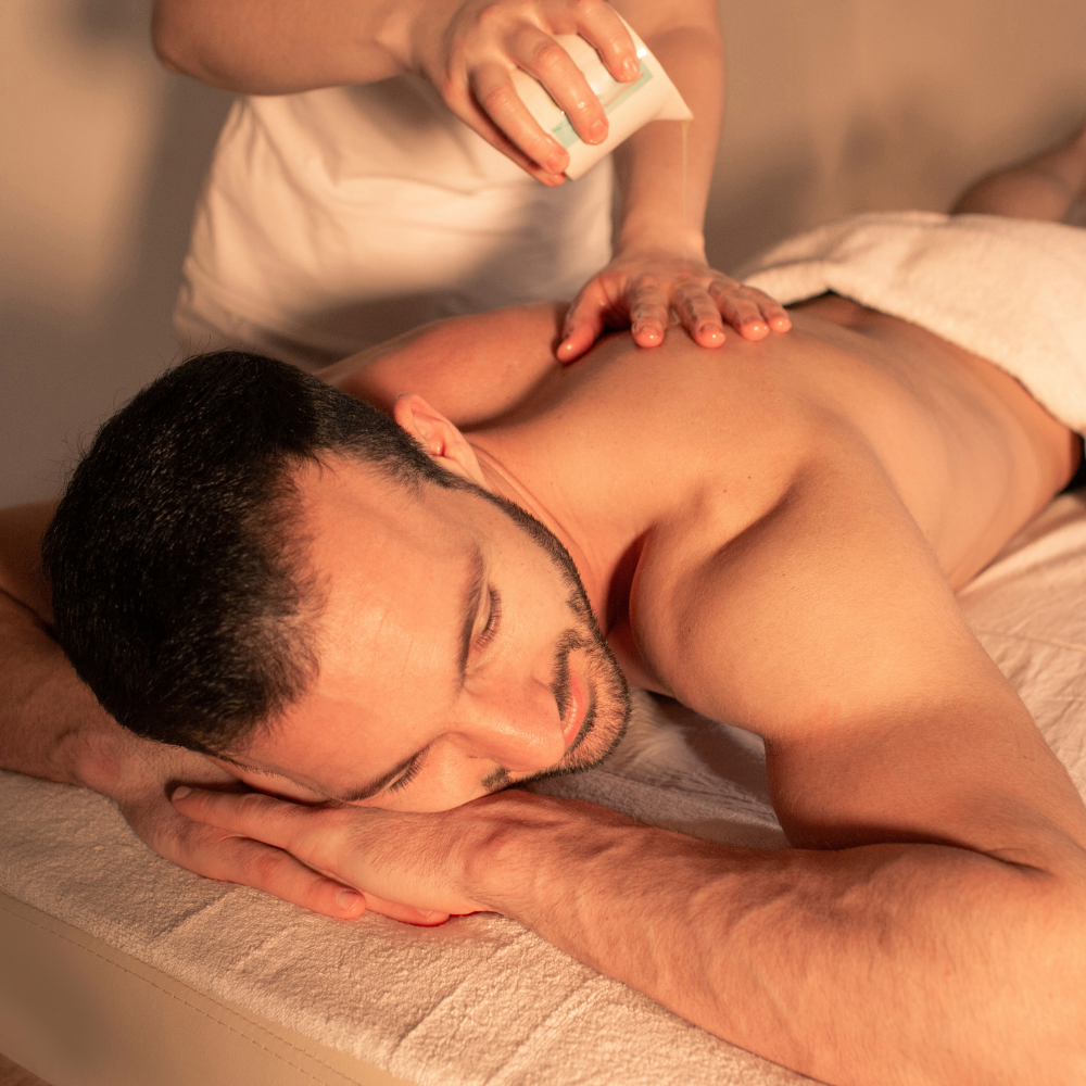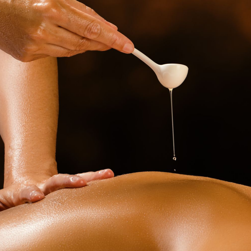 A luxurious massage using warm, melted massage candle oil to deeply relax muscles, nourish the skin, and create a calming, sensory-rich experience.
